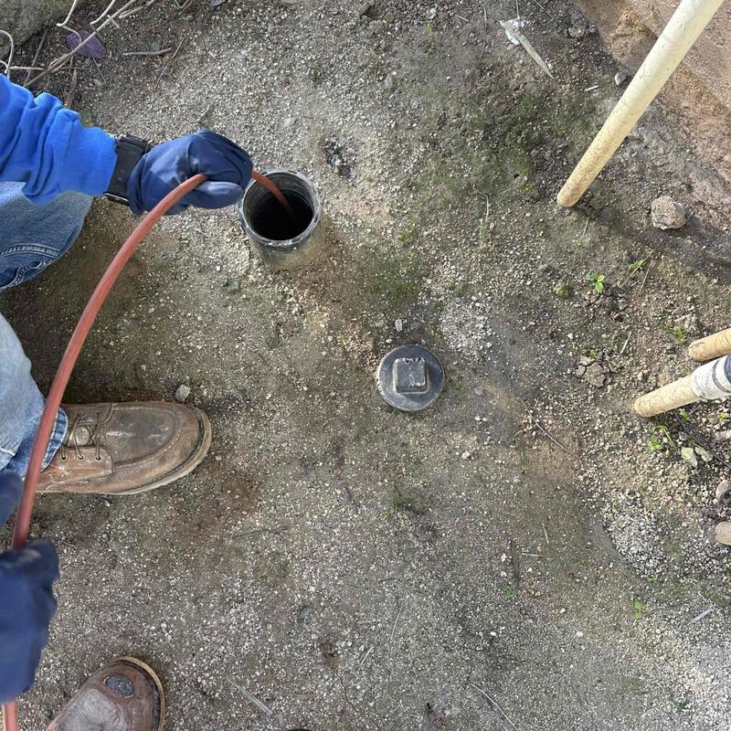 A plumber in Fallbrook, California repaired a broken main water service line beneath a residential driveway. The plumber jackhammered asphalt, excavated soil, replaced a damaged PVC tee, and installed new Schedule 80 pipe. After confirming no leaks, the area was backfilled and the water line was tested for pressure and proper function.