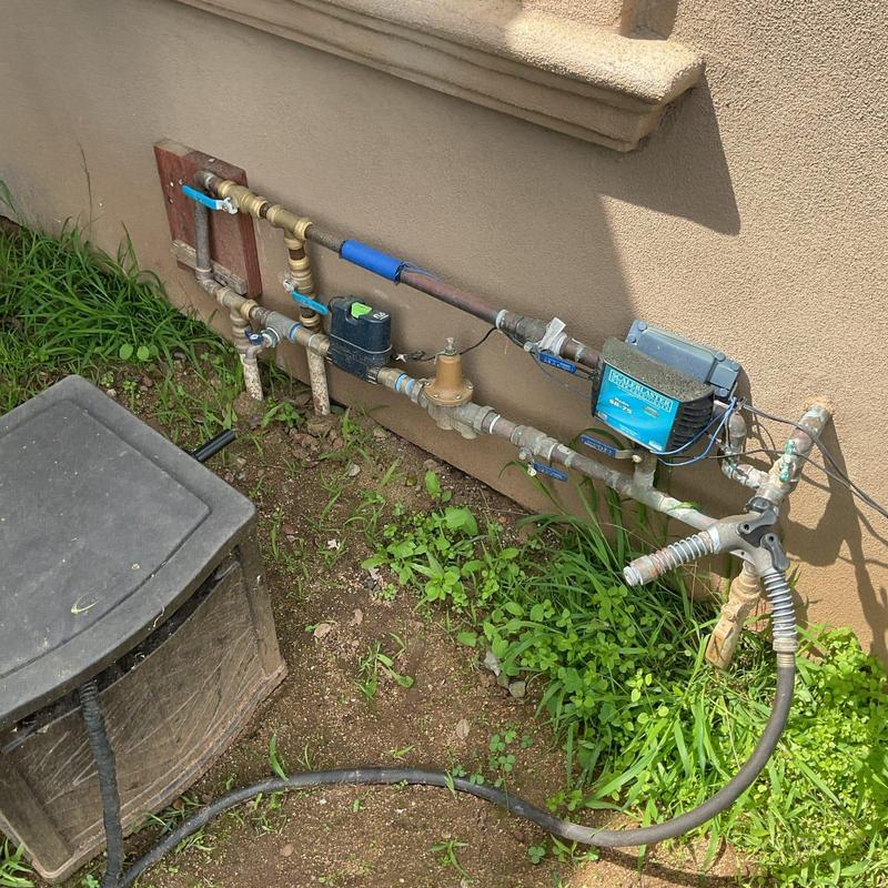 A plumber installed a Halo Zero water filtration system in Escondido, CA. The installation used 1-inch copper piping with a ball valve for system flushing. After setup, the plumber flushed the system for 30 minutes, then cycled water six times to ensure clarity.