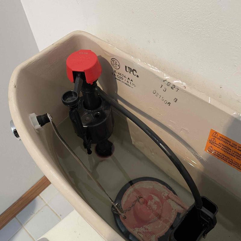 A plumber in Fallbrook, California replaced a faulty toilet fill valve to stop constant running. The technician also investigated a leak near a sink and identified the AC condensation line as the likely source, active only when the air conditioning operates.