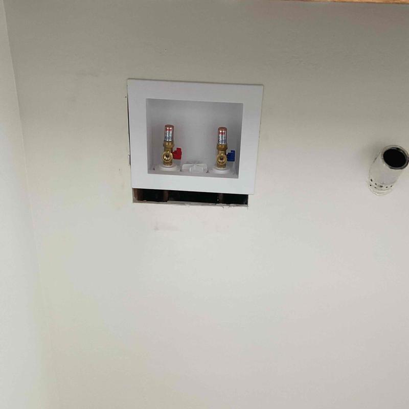 A plumber in Fallbrook, California removed leaking washer valves and a damaged drywall section. The plumber installed a new washer machine box, soldered replacement valves, and restored water service after confirming there were no leaks.