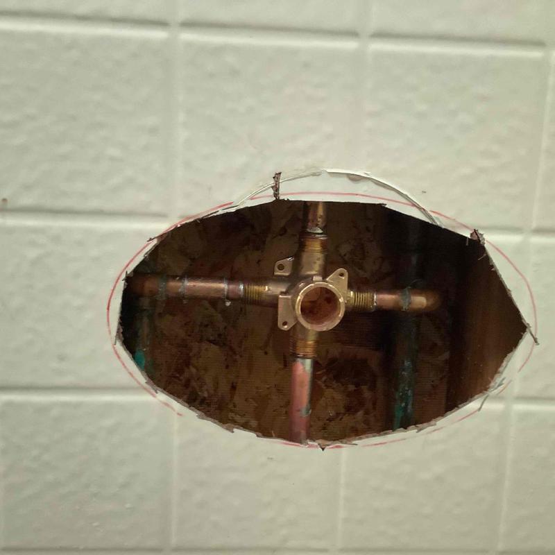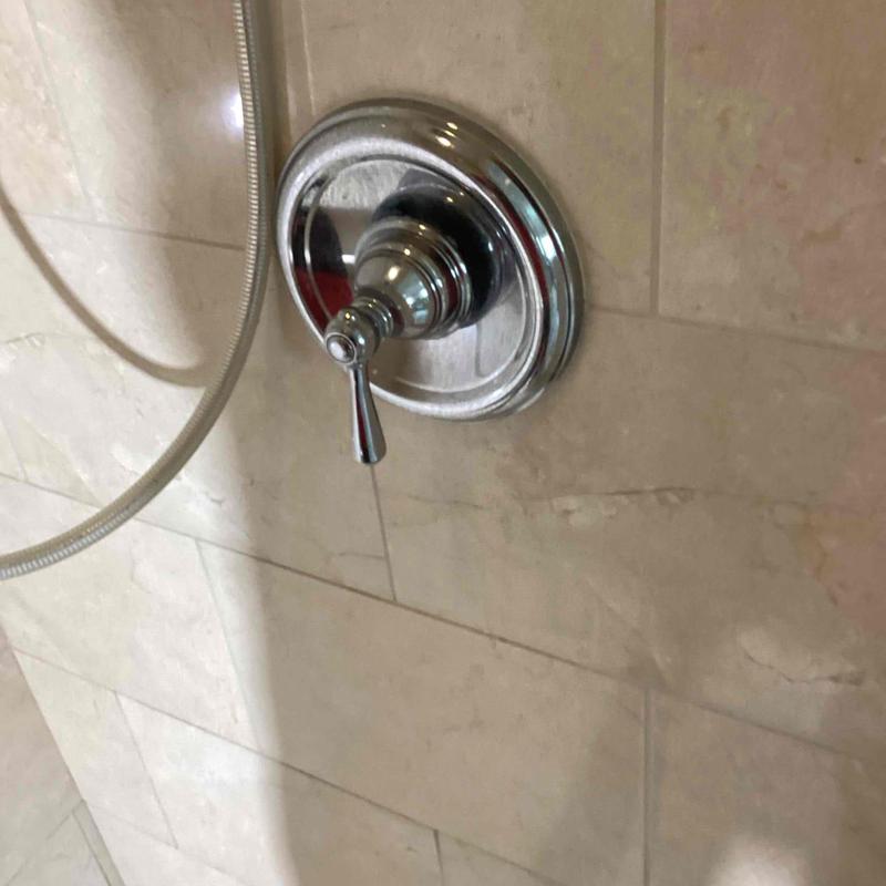 A plumber removed an old shower valve, adjusted CPVC water lines, and installed a new valve and trim outside the shower wall. Water was shut off and drained, then restored after installation. The system was tested and confirmed to have no leaks. Location: Fallbrook, California.