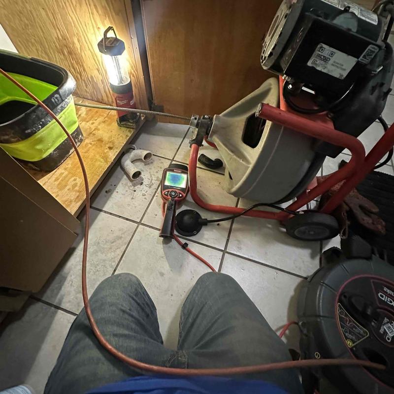 R and R Plumbing cleared a kitchen drain line in Temecula, California using a flex-shaft to remove grease and sludge buildup. After cleaning, they tested water flow and completed a camera inspection to confirm the blockage was fully removed and drainage was restored.