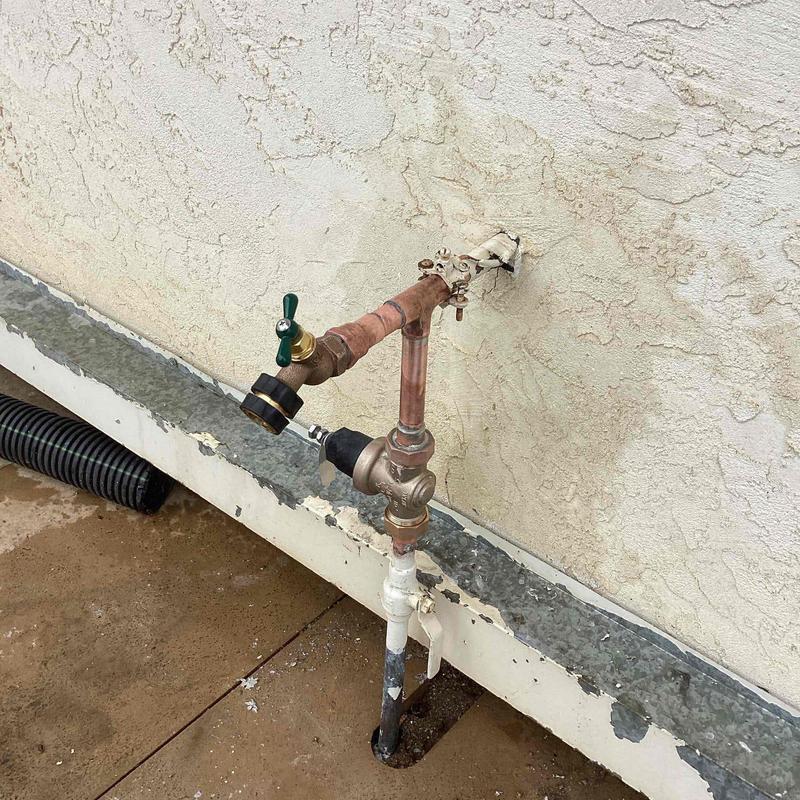R and R Plumbing repaired a leaking water main in Fallbrook, California. The technician replaced the damaged section with a new pressure regulator and ball valve located below the main shut-off. This restored proper water flow and prevented future leakage at the connection point.