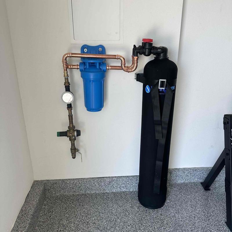 R and R Plumbing modified the water main and installed a customer-provided water treatment system and post filter in Temecula, California. The technician used copper piping for all connections, secured the main tank with unistrut, and verified system performance by checking for leaks and ensuring proper operation.