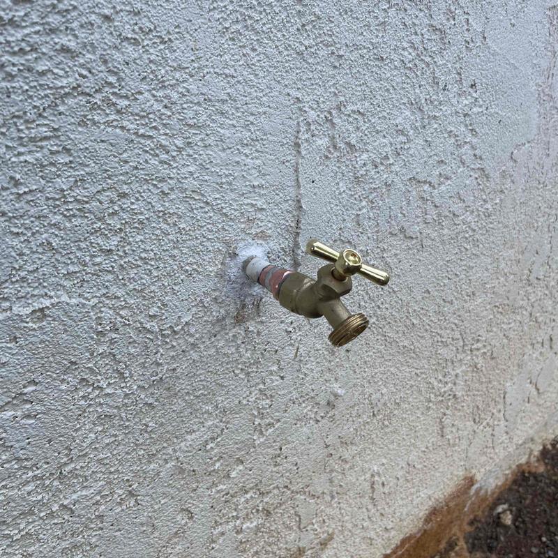 A plumber in Temecula, California replaced a damaged hose bib that could not be turned on. The plumber removed the old fitting and piping, installed a new 12-inch threaded copper fitting, and soldered it to the wall pipe. A new threaded hose bib was added. Water was restored and checked for leaks.