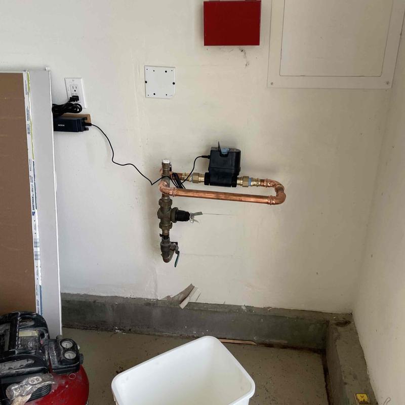 A plumber replaced a leaking copper cap inside a garage in Fallbrook, California. The technician drained the water lines, installed a new copper cap, and re-pressurized the system to ensure no further leaks were present.