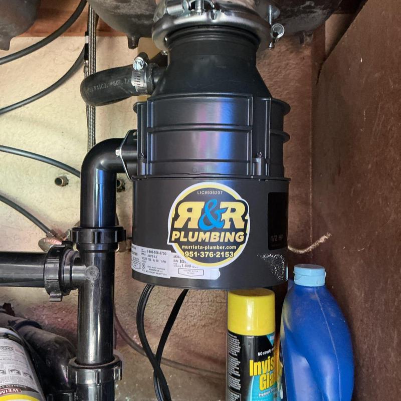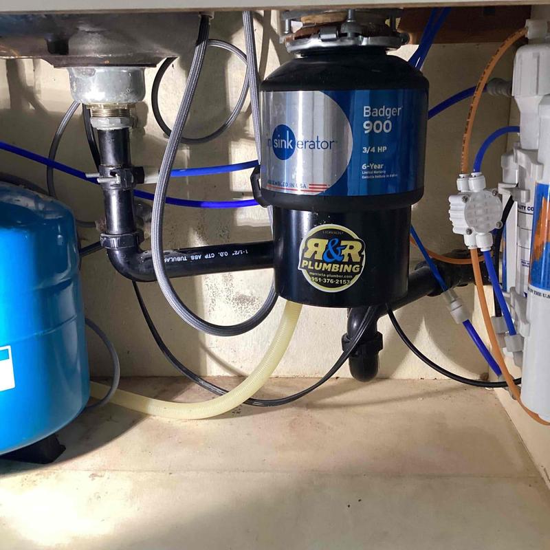 R and R Plumbing replaced a broken garbage disposal and corroded angle stops in a kitchen sink in Temecula, California. The team installed a new Insta-Hot R.O. system, a disposal switch, and a tubular drain pipe. Technicians tested all components to confirm proper water flow and no leaks.