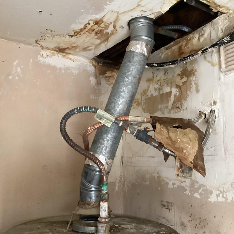 A plumber in Hemet, California replaced faulty venting on a shared water heater that served four units. The original vent installation failed inspection and was red-tagged by the gas company. The plumber removed the old vent, installed new venting to code, and restored the water heater to full operation.