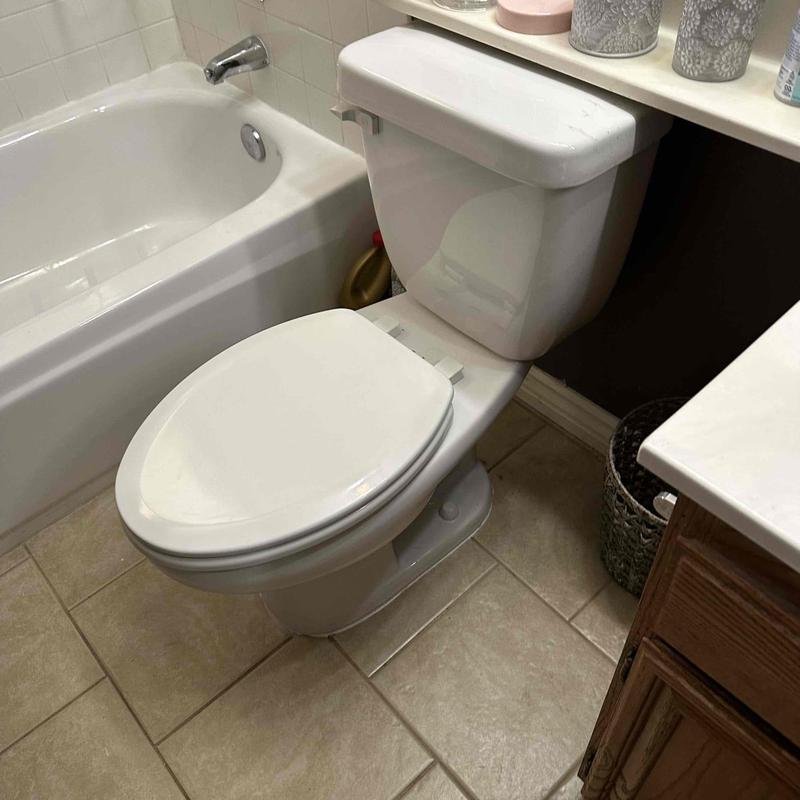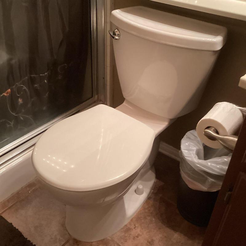 A plumber in Hemet, California replaced two round front toilets at a home, installing new comfort height, elongated American Standard models. The service included removing old units, prepping the flange, setting wax rings, securing hardware, and testing water flow. Both toilets were installed without leaks in the guest and master bathrooms.