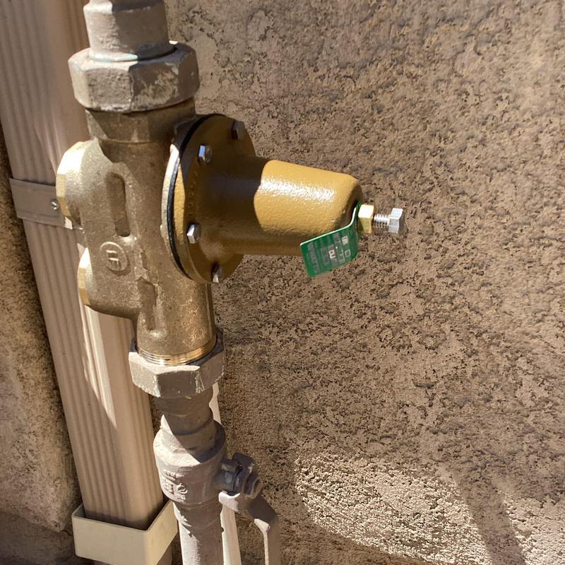 R and R Plumbing installed a double check regulator valve above the main shut-off to reduce high water pressure from 85 psi to 60 psi. This plumbing service improved pressure control for a home in Hemet, California.