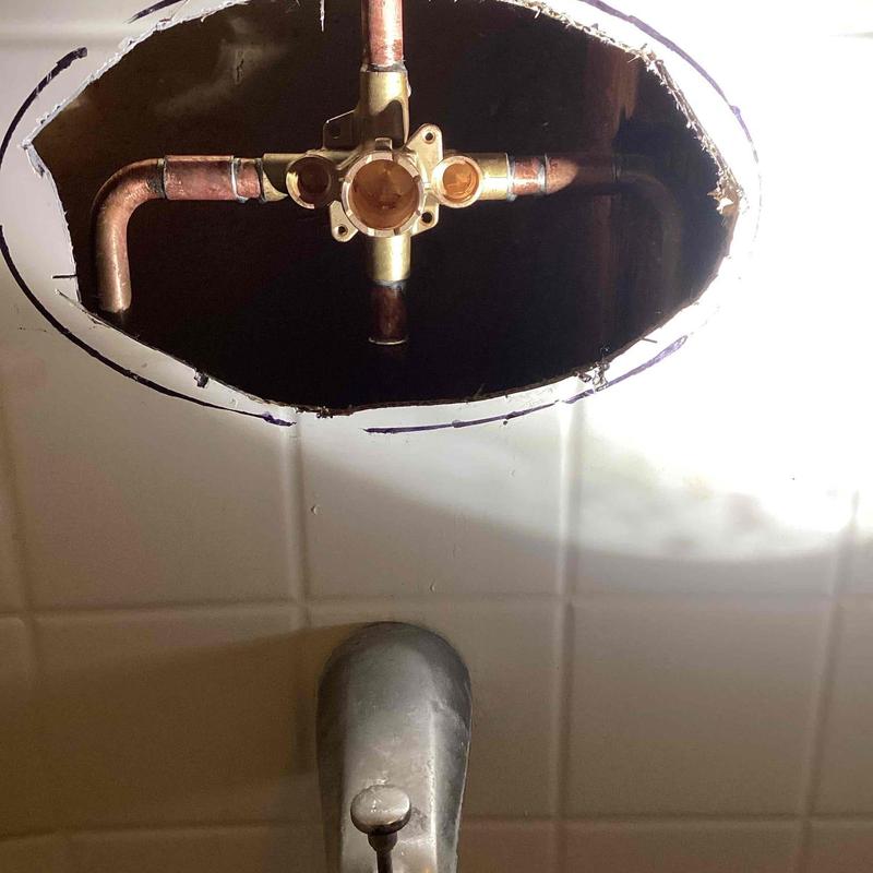 A plumber in Wildomar, California removed an old roman tub valve by cutting into drywall and waterlines. They installed a new valve, soldered connections, and added new pipes. The plumber secured new trim, spout, and handles to the tub, then inspected all connections for leaks to ensure proper operation.