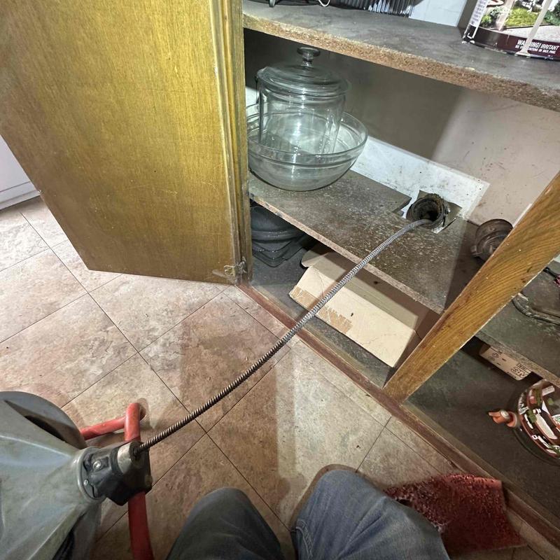 R and R Plumbing cleared a clogged kitchen sink drain in Lake Elsinore, California. They used a cleanout access to snake the line and remove the blockage. After flushing the system multiple times, they confirmed the drain was flowing correctly with no further issues.