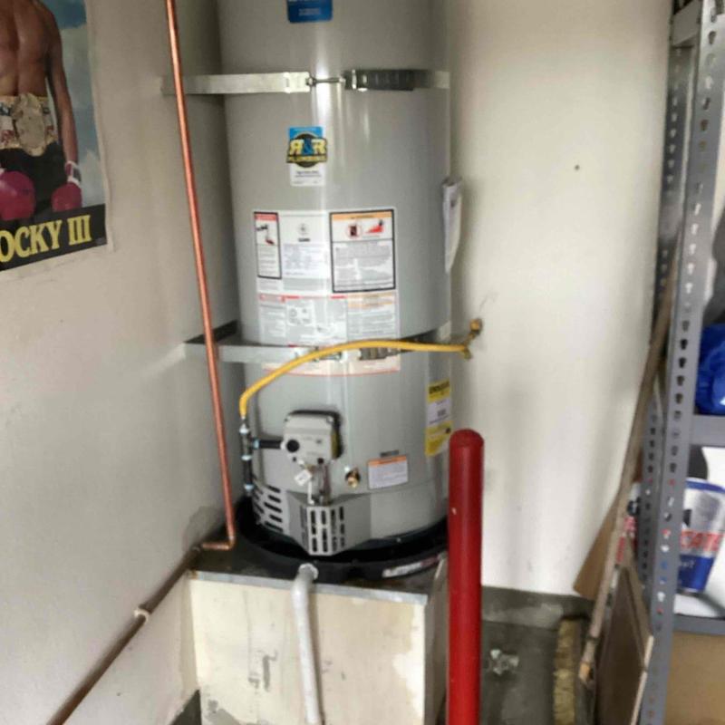 R and R Plumbing installed a new 40-gallon water heater in Lake Elsinore, California. The team removed the old unit, replaced hot and cold supply lines, connected a new gas line with a sediment trap, restored the water supply, and tested for leaks. The installation was completed with no leaks detected.