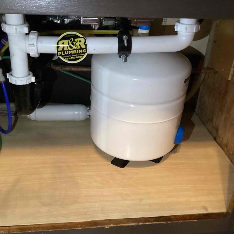 R and R Plumbing replaced two customer-supplied water filters in a garage. The technician removed the old filters, installed the new ones, flushed the system, and checked for leaks. This service was completed in Lake Elsinore, California.