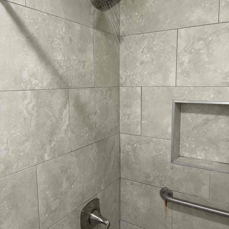 R and R Plumbing installed a customer-provided shower head and cleared a clogged sink drain in a master bathroom in Lake Elsinore, California. The team removed the old shower head, installed the new fixture, snaked the drain line, and tested all components to ensure proper function without leaks.
