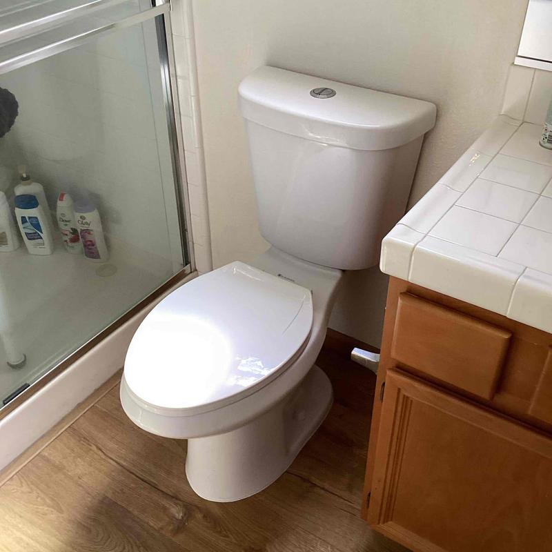 A plumber in Lake Elsinore, California removed an existing downstairs toilet, replaced the wax ring and supply lines, anchored the flange, and reset the unit. The technician restored the water supply, tested for leaks, and applied caulk around the base to complete the installation without issues.