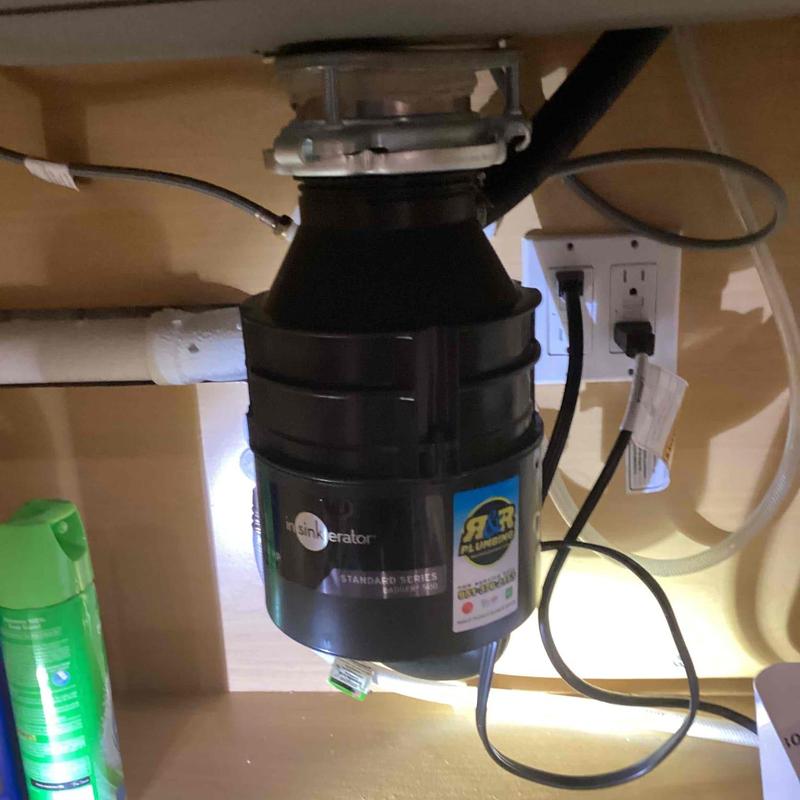 R and R Plumbing removed a faulty garbage disposal and quick release mount in Menifee, California. They installed a new ½ horsepower disposal, added a replacement mount, and reconnected all sink drainage pipes. The system was tested by filling the sink and draining the water to confirm proper installation and function.