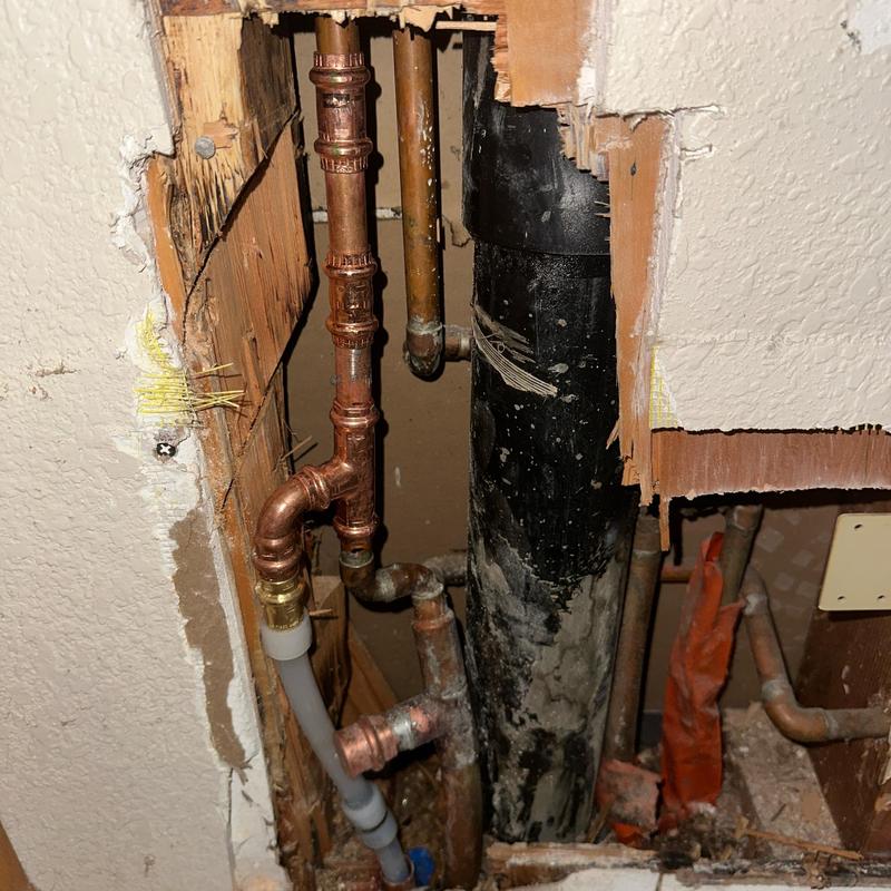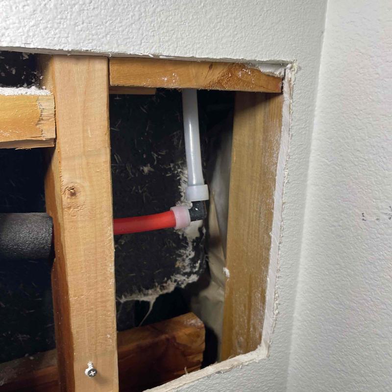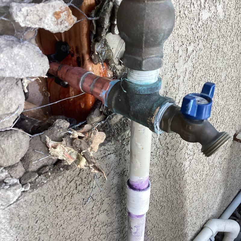 R and R Plumbing performed leak detection and pipe repair in Lake Elsinore, California. Technicians exposed the exterior wall, traced the leaking line behind the kitchen sink, replaced damaged sections with new copper piping, reconnected it to the manifold, and pressure-tested the system. The team cleared all debris after completing the work.