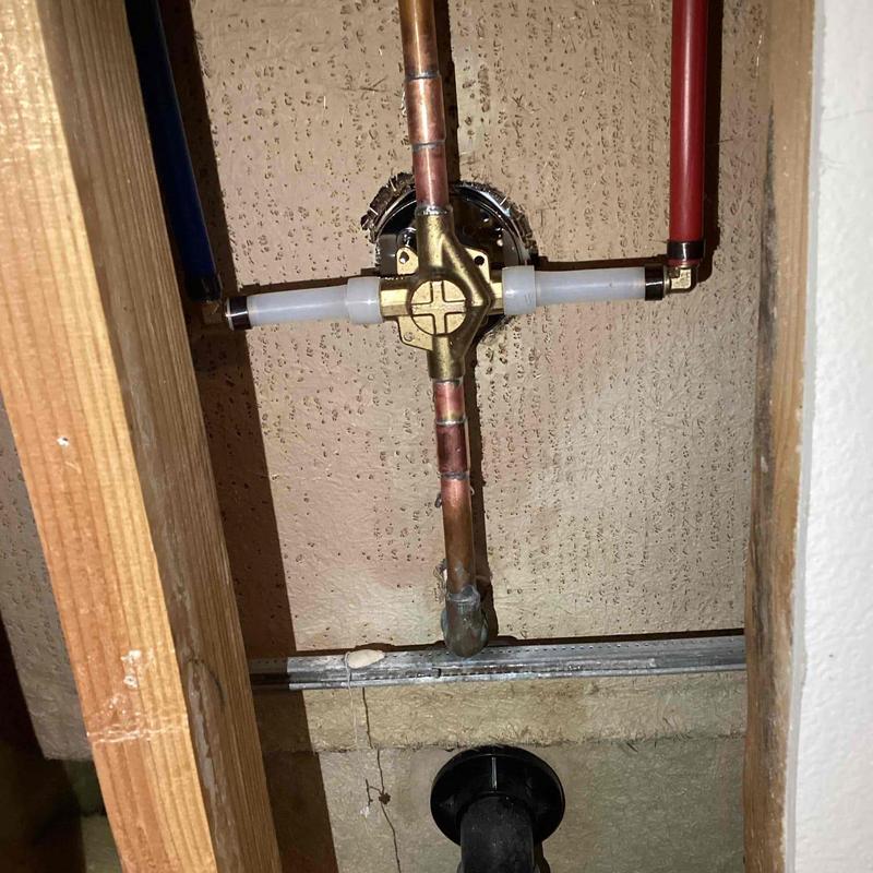 R and R Plumbing installed a customer-supplied tub and shower valve in Murrieta, California. The work involved securing the valve in place and connecting it to the home's existing plumbing system to ensure proper water flow and temperature control.
