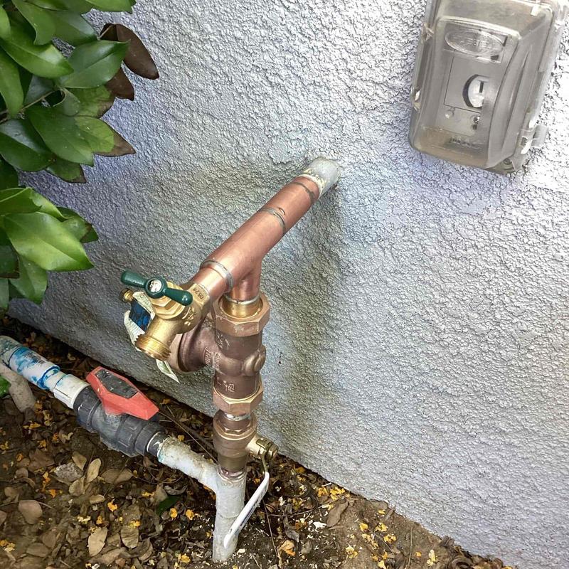 A plumber in Murrieta, California removed a faulty hose bib and section of PVC pipe, then installed a new shut-off valve and reconnected the irrigation system using copper and PVC fittings. The plumber also rebuilt a toilet tank with new internal components and confirmed both systems had no leaks after testing.