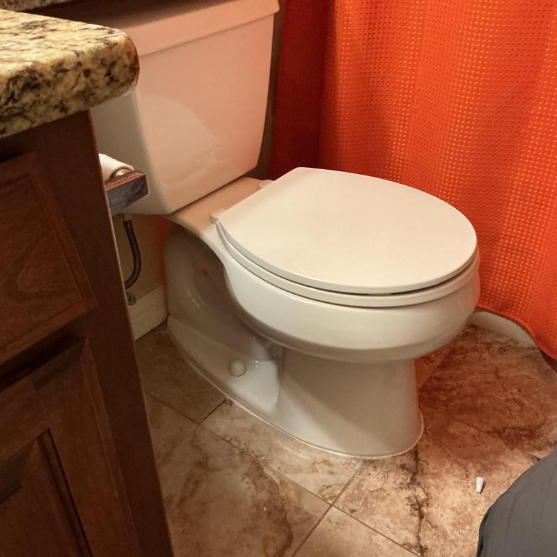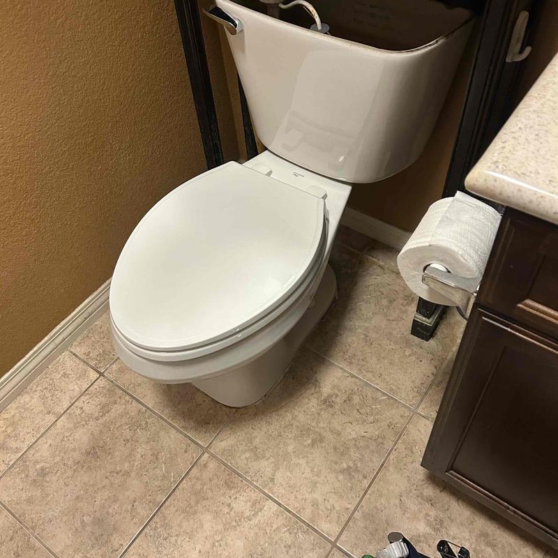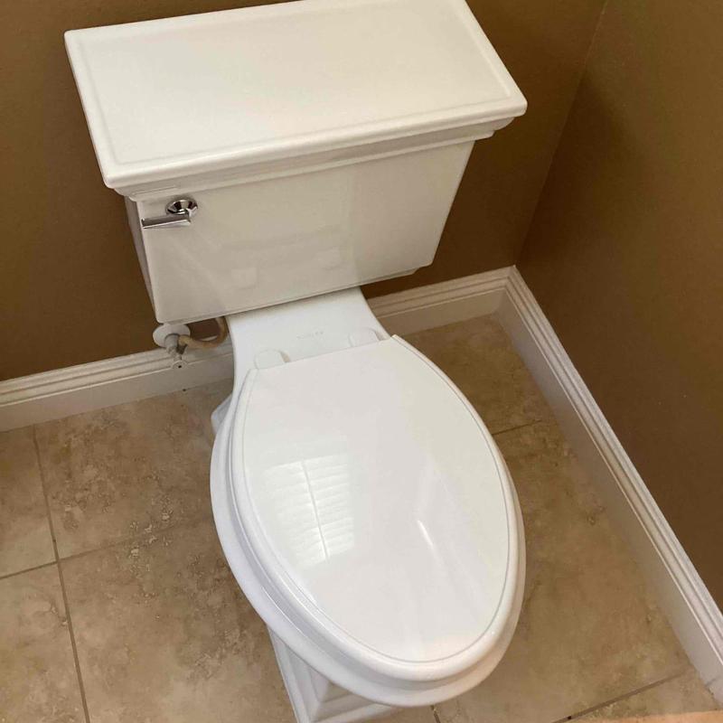 A plumber in Menifee, California removed two existing toilets and installed two new Kohler standard toilets. The work included new wax rings, supply lines, and mounting hardware. The plumber confirmed proper function by flushing both toilets and disposed of the old units.