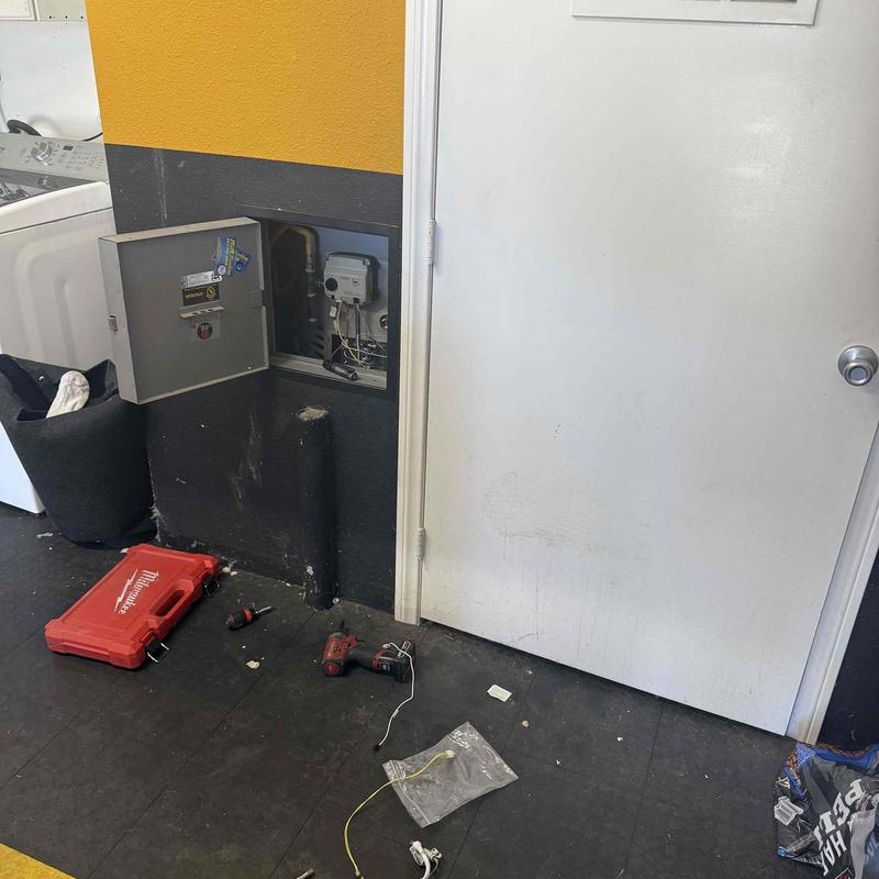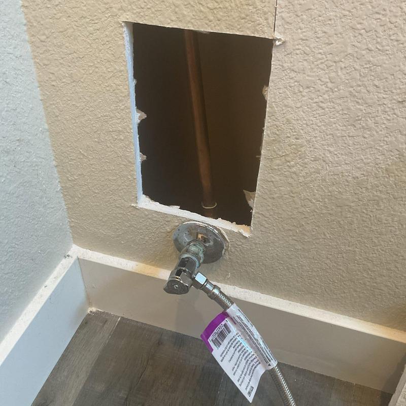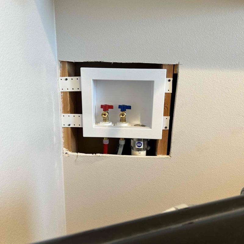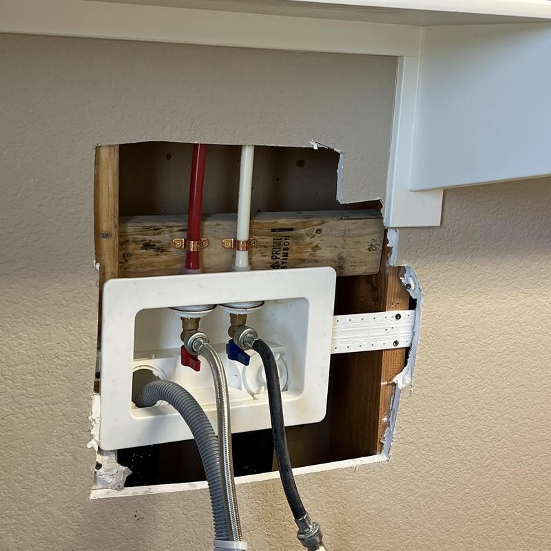 A plumber in Murrieta, California replaced seized washing machine valves. They accessed pipes by removing drywall, removed old valves, and installed new hot and cold valves. After completing the connections, they restored water flow and verified all fittings for leaks. Drywall repair was not included in the service.