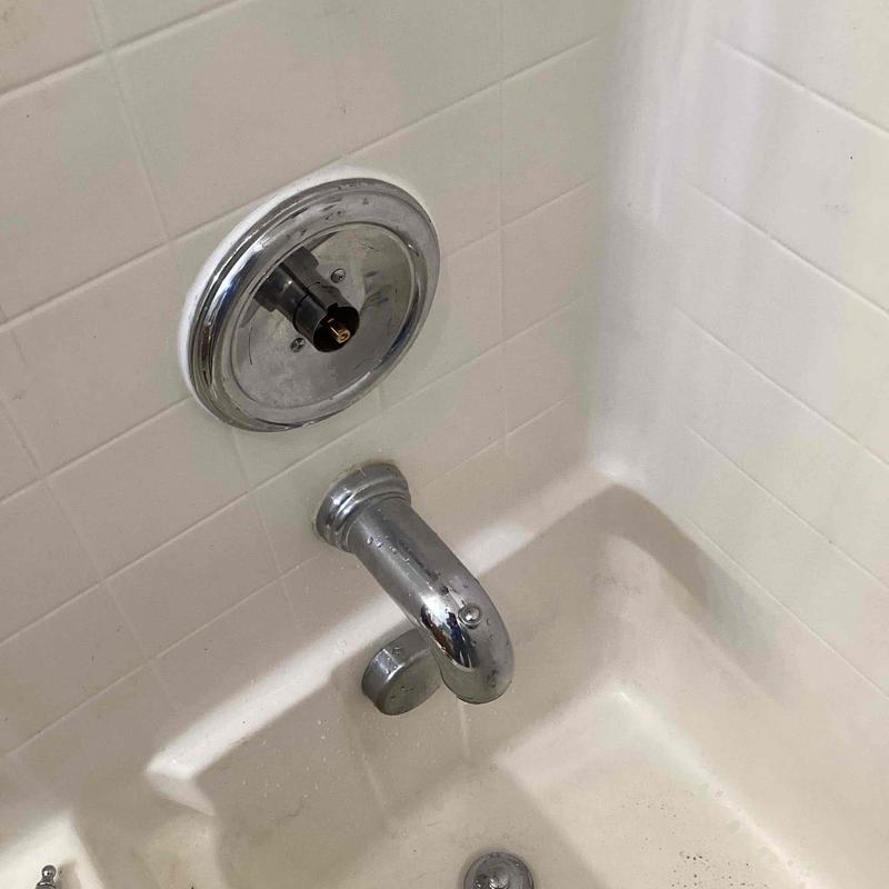 A plumber in Menifee, California replaced a failed tub spout with a new Moen model featuring a diverter. The technician sealed the base with caulk and tested for proper function. They also replaced the hot-side cartridge in a leaking bathroom faucet and confirmed there were no leaks after installation.