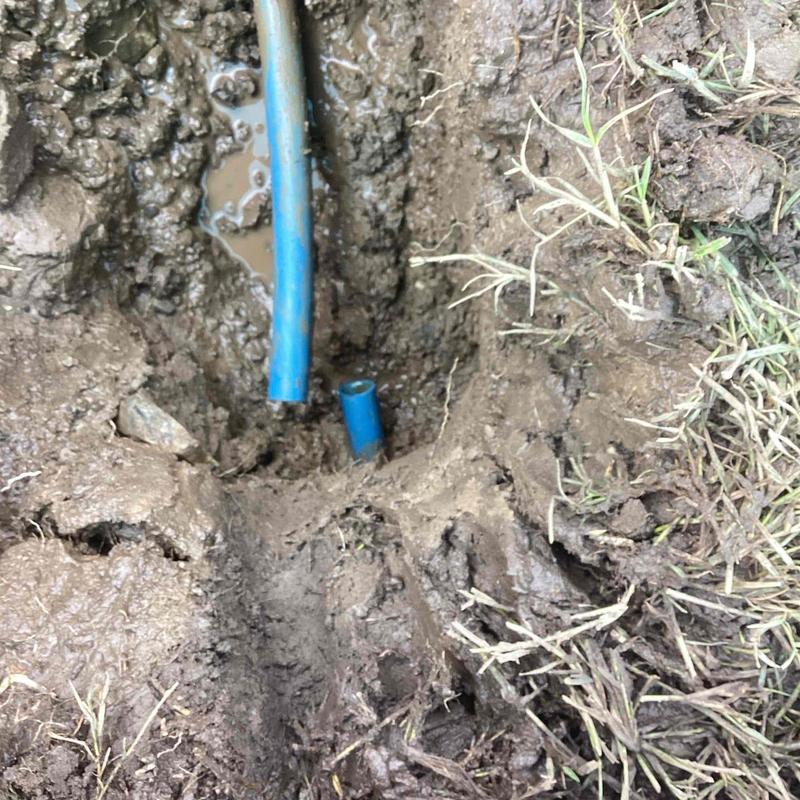 A plumber in Wildomar, California repaired a ruptured 1-inch PEX pipe in a front yard. The plumber excavated the water main, installed a coupling to reconnect the pipe, then tested the water system for pressure and leaks. After confirming proper flow, the plumber backfilled the area and restored water service to the home.