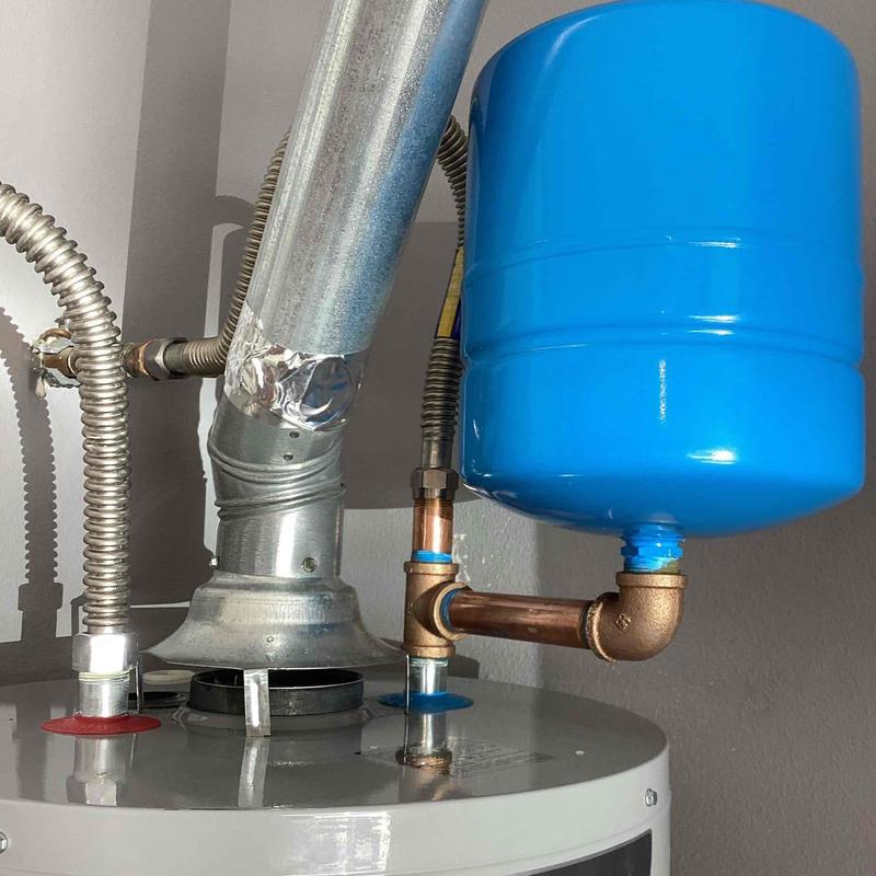 R and R Plumbing installed a new thermal expansion tank at a residential water heater in Murrieta, California. The team shut off the water, drained the heater, and fitted the tank using brass connections. They restored water flow and pressurized the system after installation.