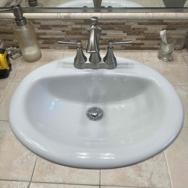 R and R Plumbing replaced two bathroom sinks in Hemet, California. A technician removed the old sinks in a guest and master bathroom, installed new ones, and reconnected the original faucet and pop-up assembly. They tested both sinks by running water to confirm there were no leaks.