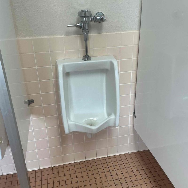 A plumber in Menifee, California replaced two Sloan flush valves for urinals in a men's restroom. The work included shutting off the water, removing the old valves, installing new Royal Sloan valves, and testing both units to confirm proper function and no leaks.