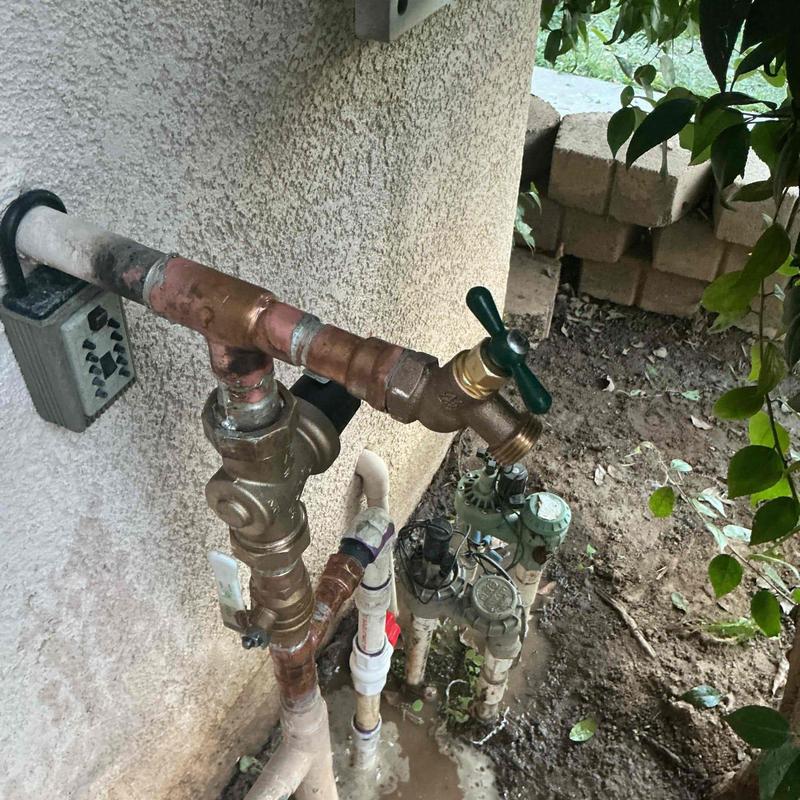 R and R Plumbing installed a new 1-inch ball valve and pressure regulator on the water service riser in Riverside, California. They also added a ¾-inch PVC ball valve for the sprinkler system. All components were tested for proper function, safe pressure levels, and leak-free performance.