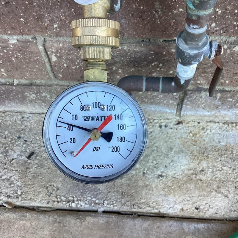 A plumber in Moreno Valley, California shut off the main water supply, removed a failed PVC-to-copper connection, and installed a new Baker fitting with a brass-to-copper transition. They used Pro Press fittings to complete the repair and performed a pressure test to confirm proper function.