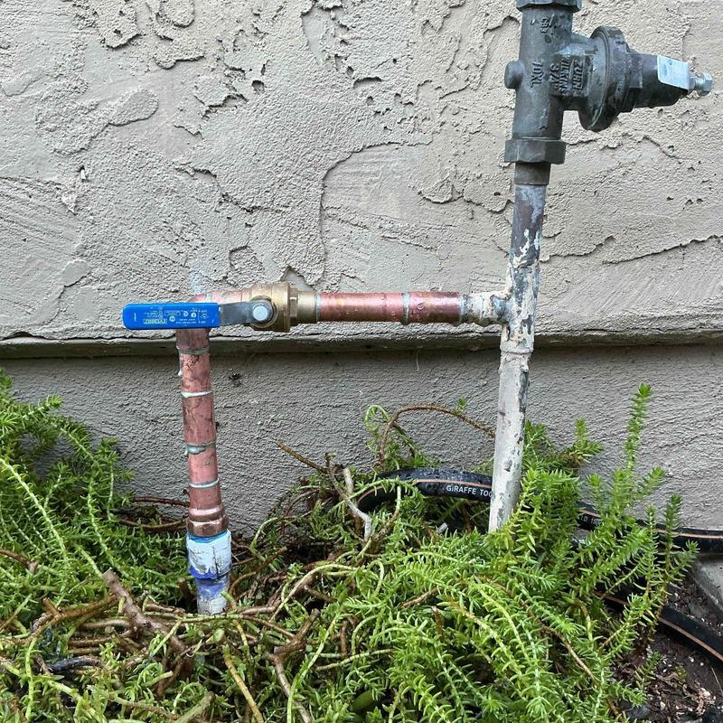 A plumber in Oceanside, California replaced a ball valve at the main water riser for an irrigation line. The job included removing PVC and a copper adapter, rebuilding the section with new copper and a brass valve. The plumber also replaced a hose bib with copper fittings and reconnected PVC, confirming no leaks after testing.