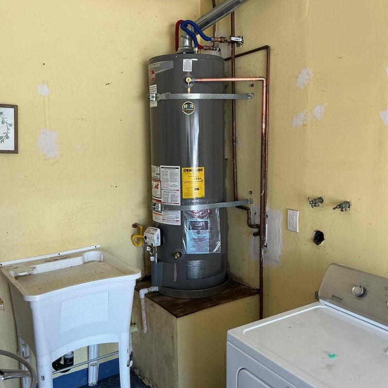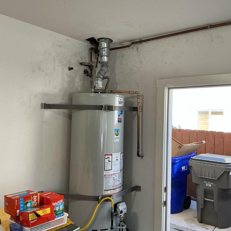 R and R Plumbing replaced an existing water heater with a customer-supplied 40-gallon Rheem unit in Oceanside, California. The team removed old components, installed new supply lines and a shut-off valve, and connected the venting system. They filled and ignited the new heater, then inspected the setup to confirm proper operation and leak-free performance.