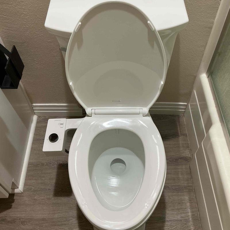 R and R Plumbing replaced a downstairs guest restroom toilet in Oceanside, California. The team removed the old unit, cleared minor root growth near the flange, installed a new raised-height elongated Kohler toilet with a jumbo wax ring, and added a customer-supplied bidet. Final checks confirmed proper installation with no leaks.