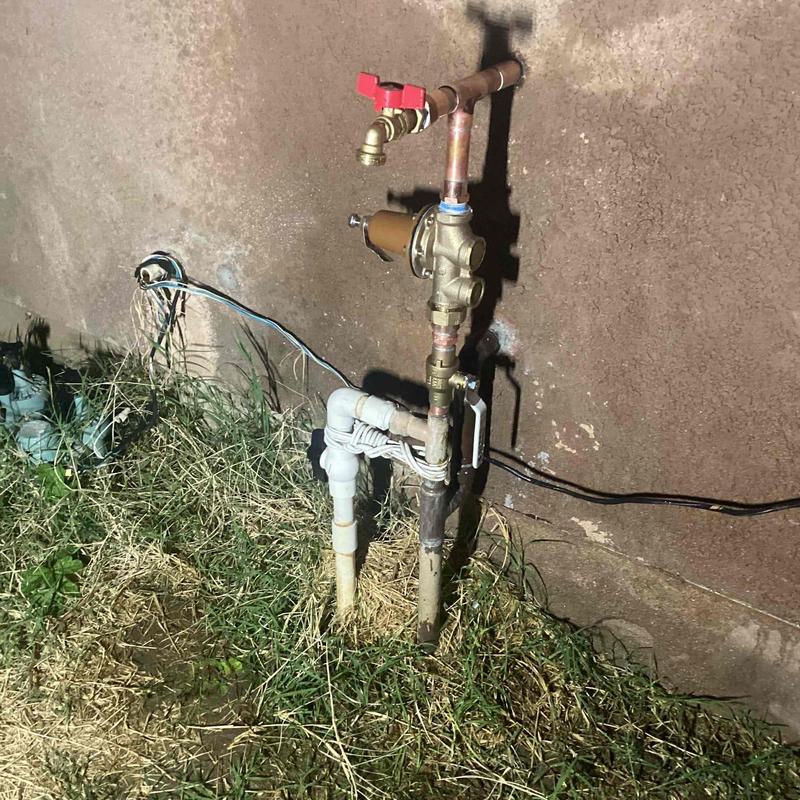 A plumber in Riverside, California replaced a stolen backflow device. The technician cleaned the copper, installed new pro press fittings, a wye strainer on each riser, a Watts backflow preventer, and a copper union. They re-pressurized the water lines and checked for leaks. The customer may need backflow testing due to the new installation.