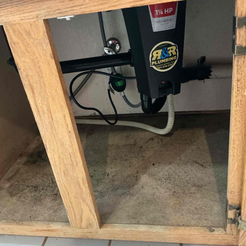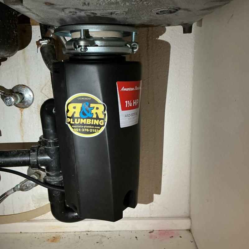 R and R Plumbing installed a customer-provided garbage disposal in Temecula, California. The technician connected the unit, adjusted fittings for proper alignment, and tested all parts for secure installation and leak-free operation.