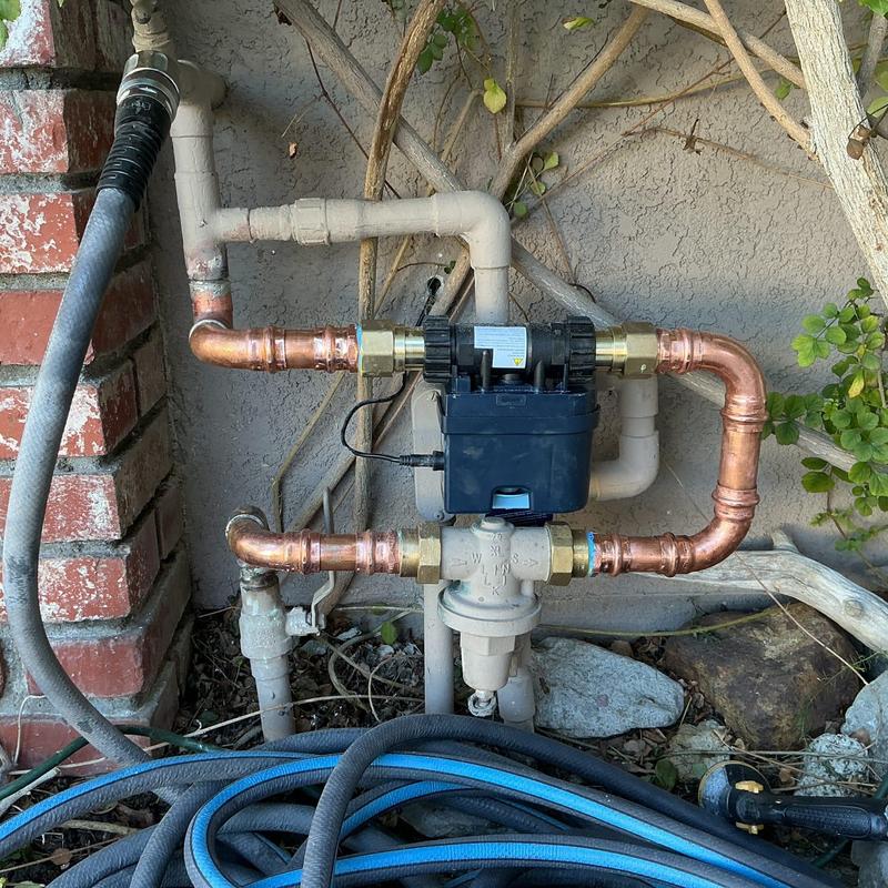 R and R Plumbing installed a 1-inch Moen Flow device on the main water line in Murrieta, California. The team modified the existing line, installed fittings, restored water service, tested for leaks ensuring system integrity, and cleaned the site thoroughly after completion.