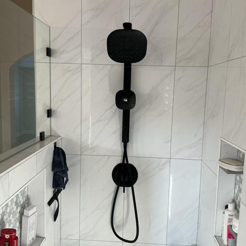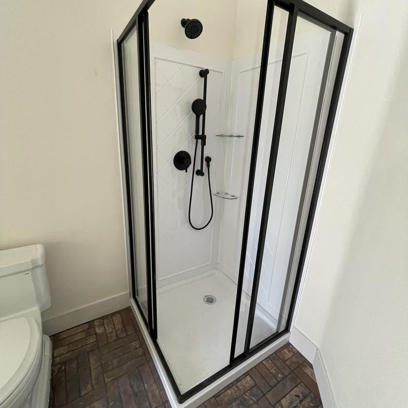 A plumber in Temecula, California installed customer-supplied shower trim in a bathroom. The work included attaching a valve cover plate, handle, hand shower, and shower head. The plumber also sealed all new fixtures to the shower wall following the installation of new shower walls by others.