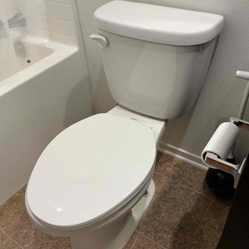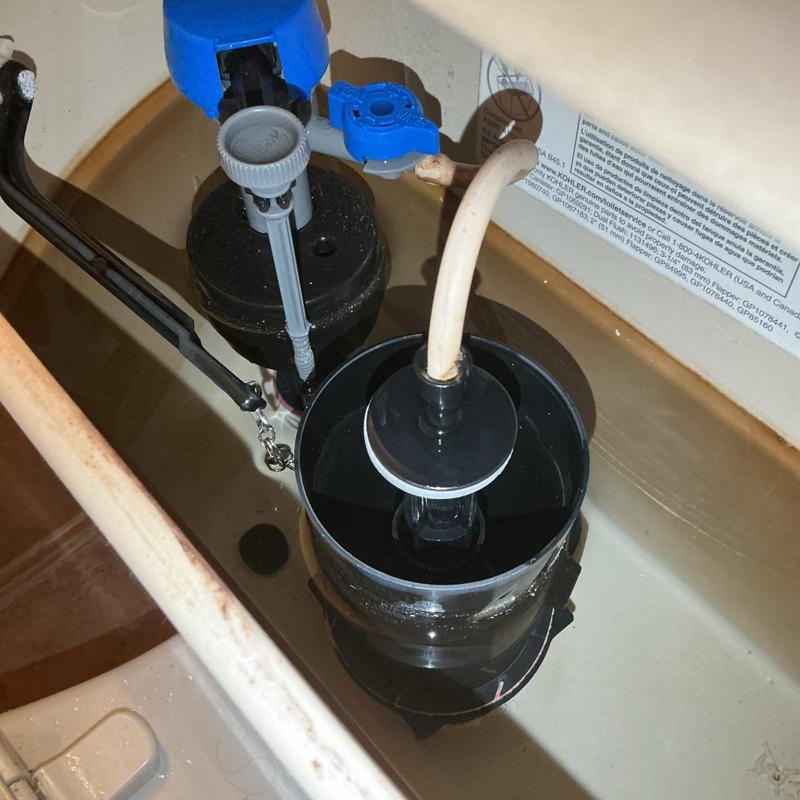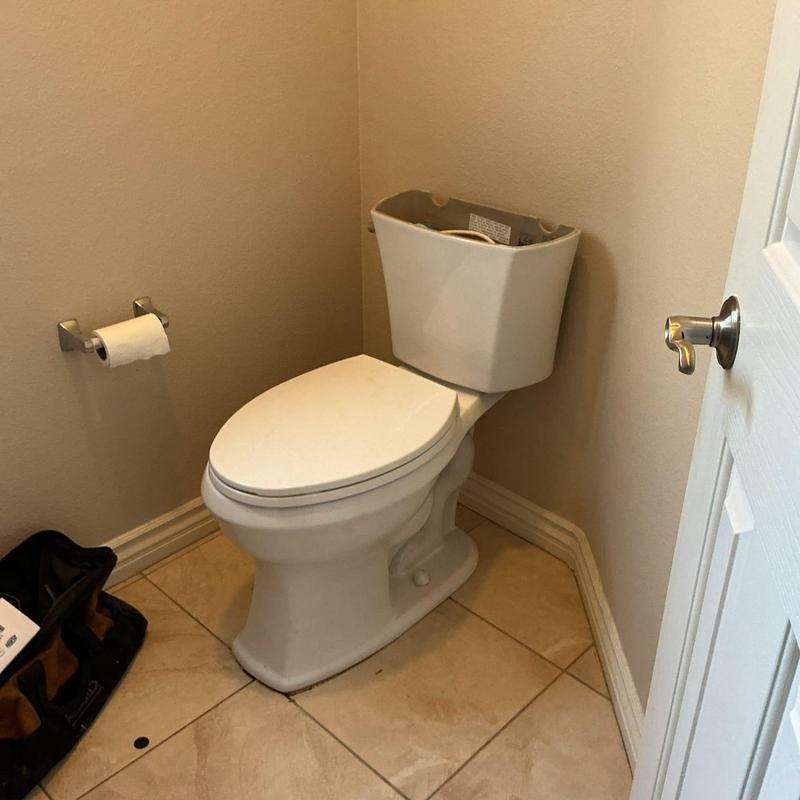R and R Plumbing repaired a running toilet in a hall bathroom in Temecula, California. The team identified a warped flush valve gasket as the cause, replaced it with a Kohler-specific gasket, restored water service, and verified there were no leaks after installation.