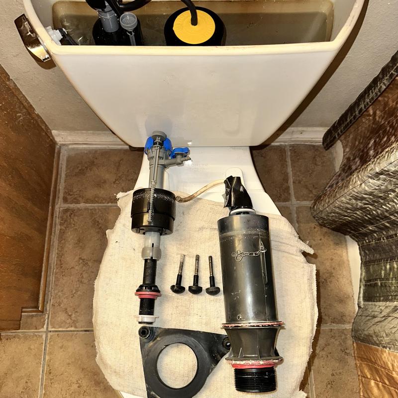 A plumber in Murrieta, California replaced a broken toilet fill valve and a deteriorated flush tower seal in an upstairs guest bathroom. The plumber installed a new universal fill valve, connected it with a steel braided supply line, and tested the system to ensure proper function and no leaks.