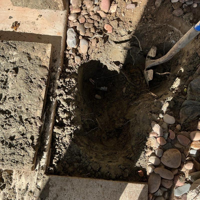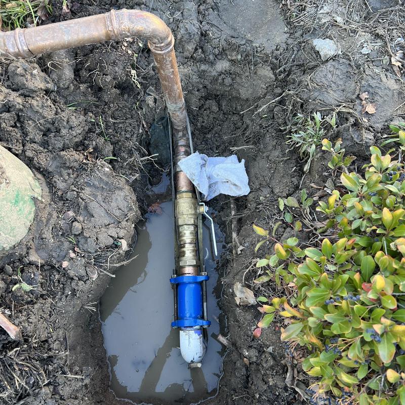 A plumber in Temecula, California exposed an underground pipe and completed a spot repair near the meter. The job involved digging to access the damaged section and restoring proper function to the plumbing line.