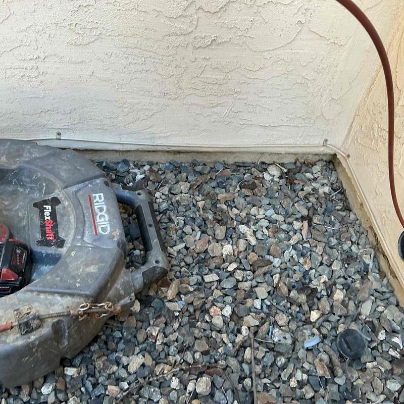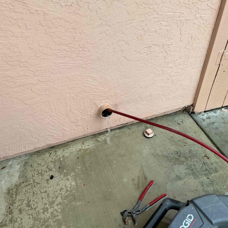 A plumber cleared a clogged main sewer line at the rear of an ADU in Hemet, California. The work included snaking through the cleanout and septic tank, removing the blockage, flushing the line with water, and reinstalling the septic tank cap. The plumber confirmed proper flow and absence of backups.