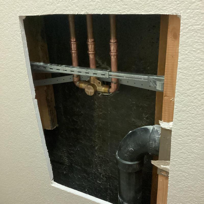 A plumber in Temecula, California, replaced a failed half-inch copper pipe in a master bathroom wall. The job included cutting and soldering new type L copper with updated fittings, installing customer-supplied angle stops, and adding an exterior hose bib. The entire system was then pressurized and checked for proper function.