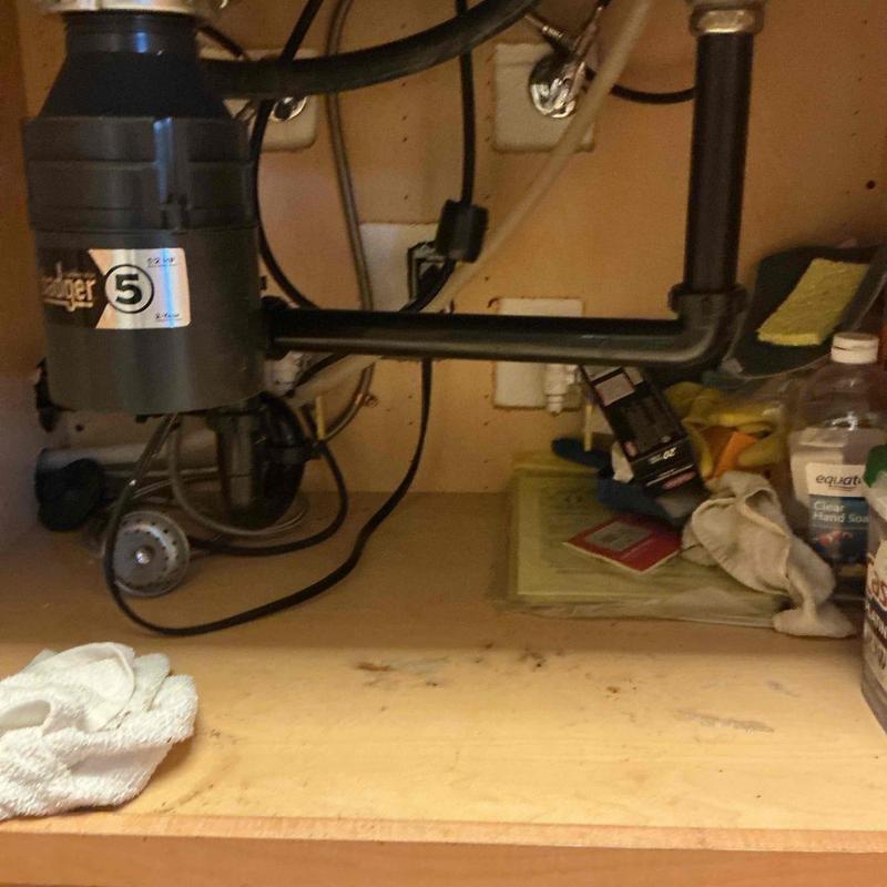 A plumber in Temecula, California removed a broken garbage disposal and installed a new Badger 5 1/2 horsepower unit. The service included disassembling the old unit, supplying the replacement, and confirming proper water flow after installation. All parts and labor were included.