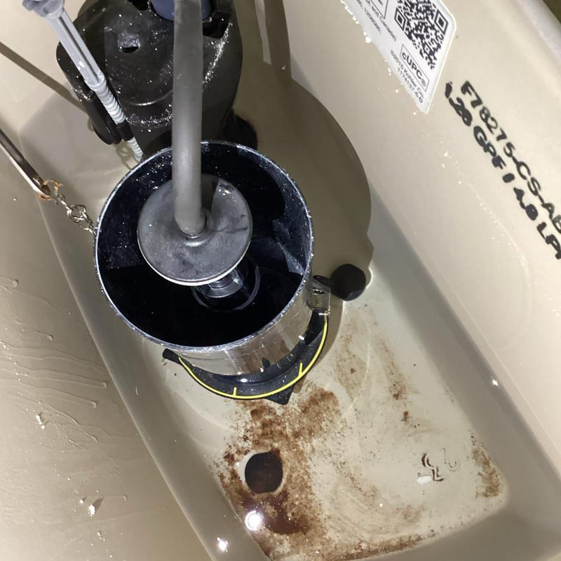 A plumber in Murrieta, California replaced a faulty flush valve that caused continuous toilet running and bathroom flooding. The plumber installed a new flush valve and tested it multiple times to confirm proper function. The work was completed with a one-year workmanship warranty.