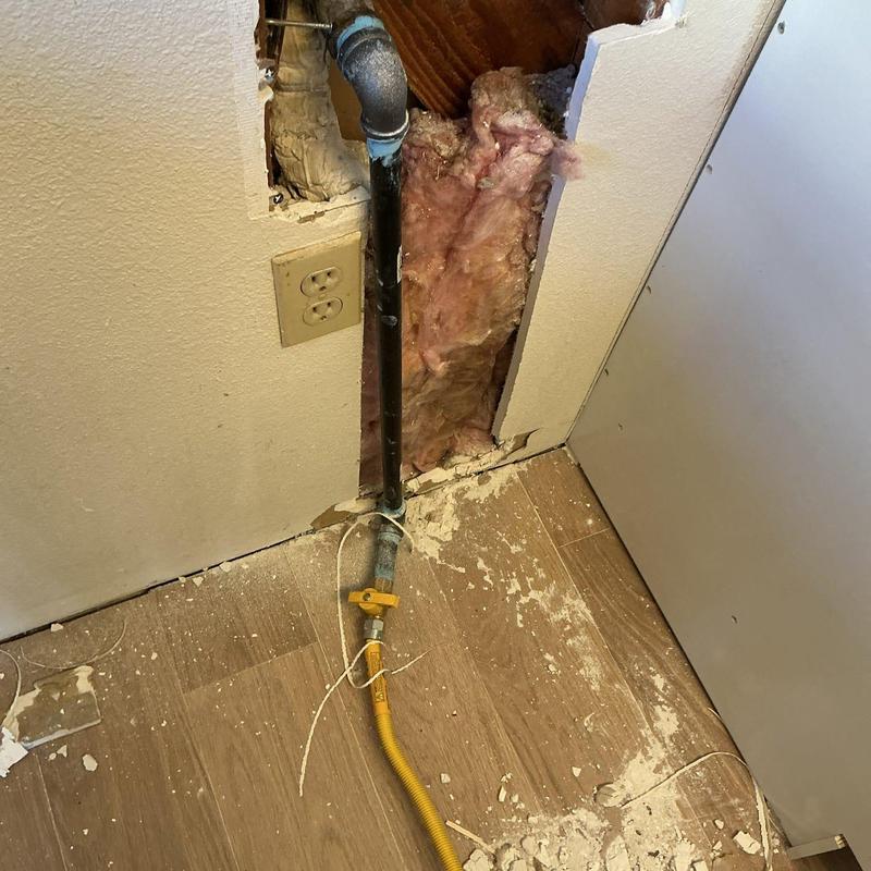 A plumber in Temecula, California removed homeowner-installed gas piping, applied new thread tape and pipe dope, then reinstalled the gas line behind a stove. The plumber reconnected the stove and tested all burners and the water heater to confirm safe and leak-free operation at all connection points.