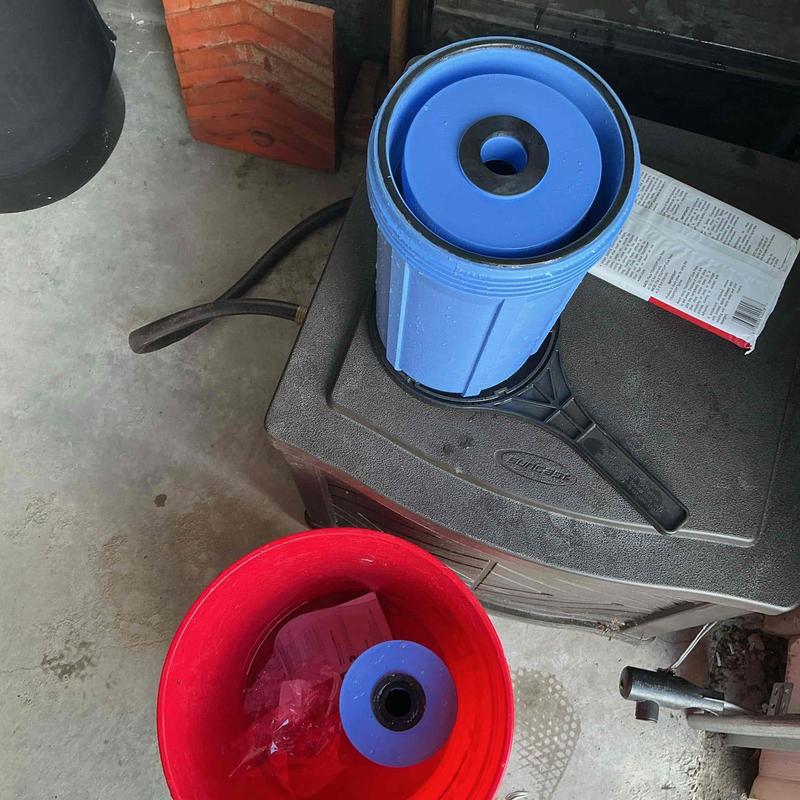 A plumber in Temecula, California replaced a customer-supplied water filter located in the garage. The service included shutting off the water, draining the system, removing the canister, installing the new filter, and restoring water. The plumber tested water pressure and verified the pressure reducing valve and connections showed no leaks.