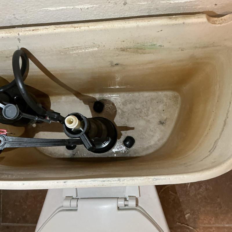 A plumber in Murrieta, California replaced internal components in a downstairs hallway toilet. The work included installing a new fill valve, flush valve, tank-to-bowl gasket, and mounting hardware. The plumber remounted the tank, reconnected the supply line, and tested the system. All parts functioned correctly with no leaks.